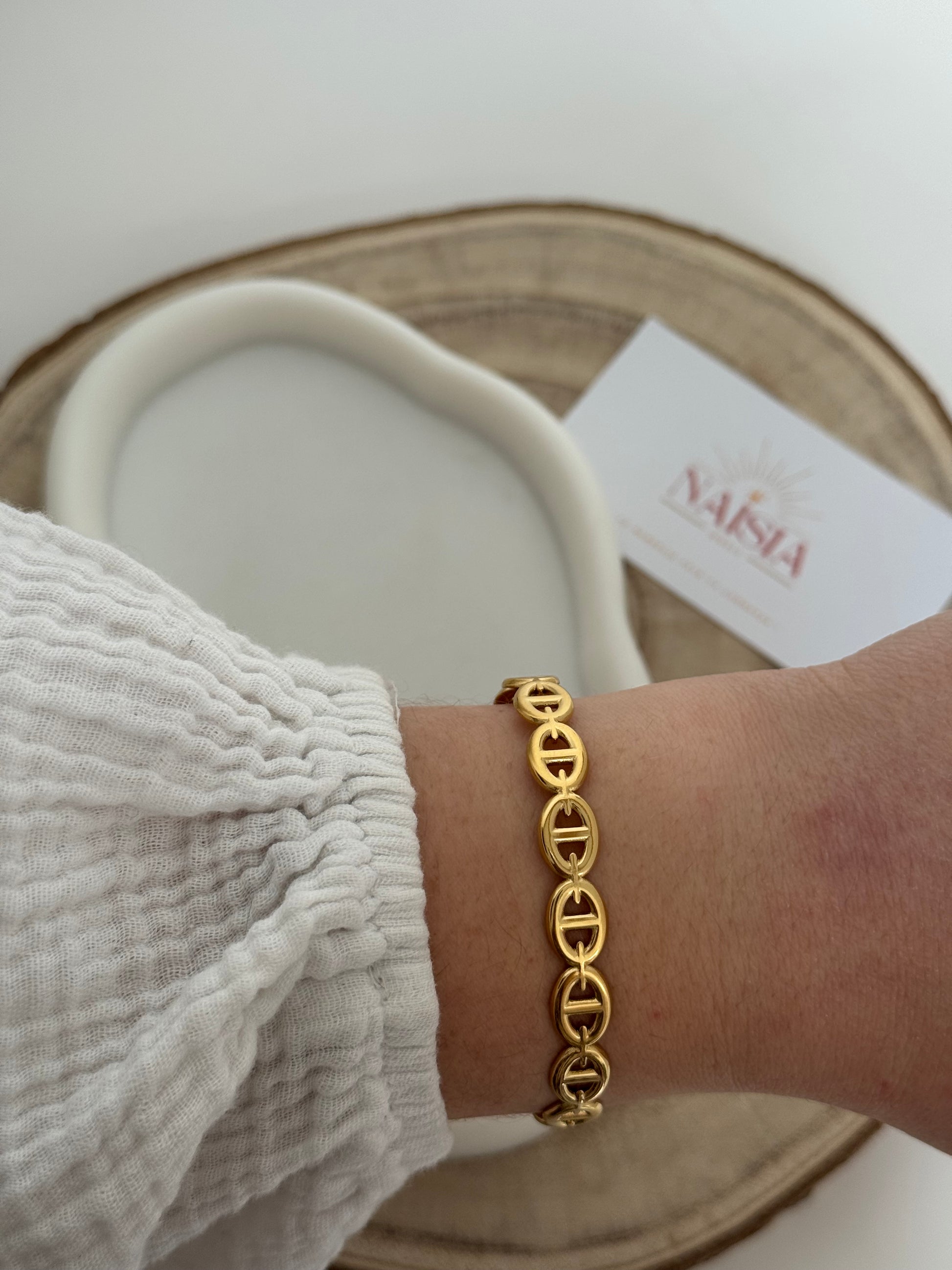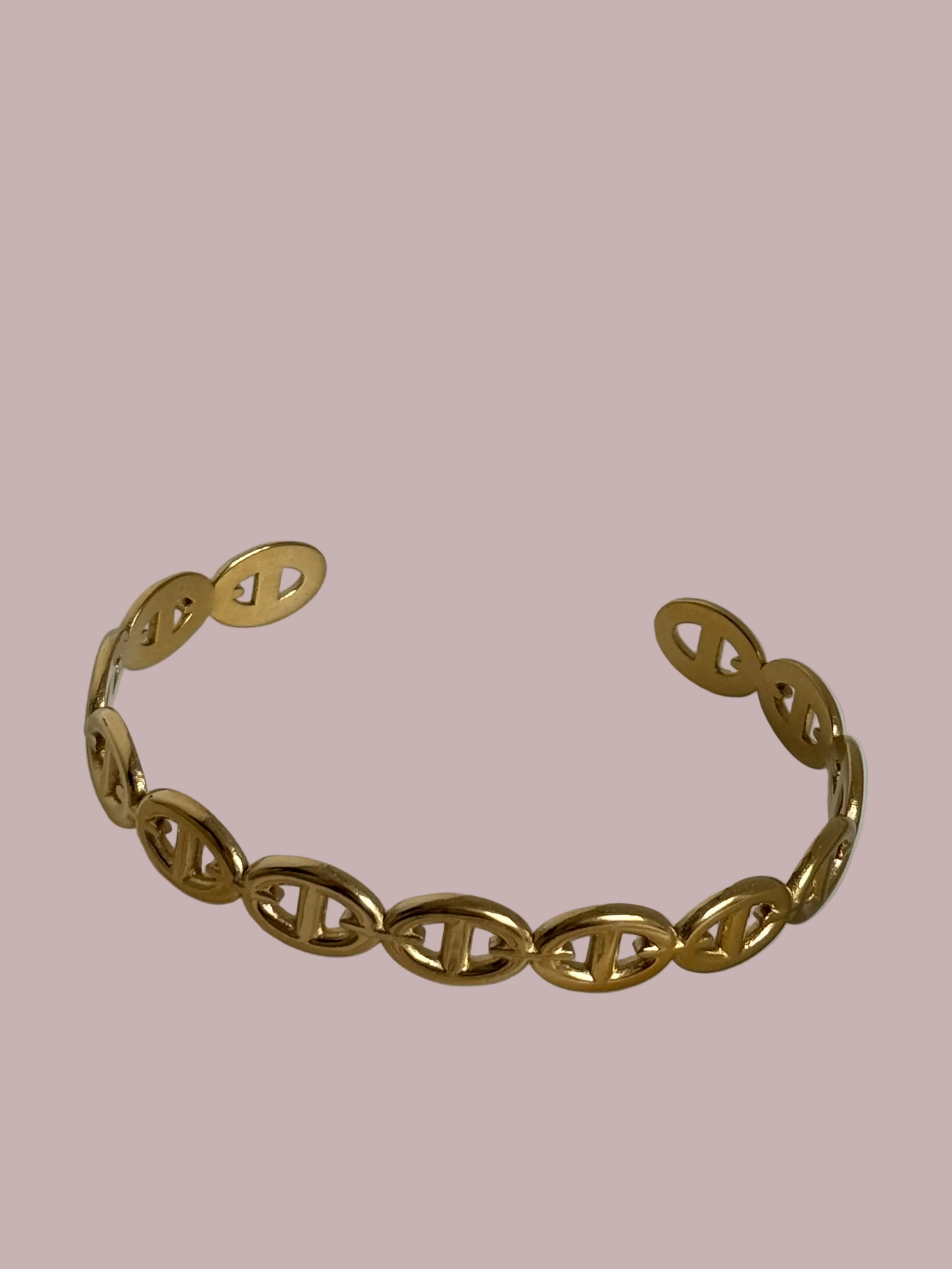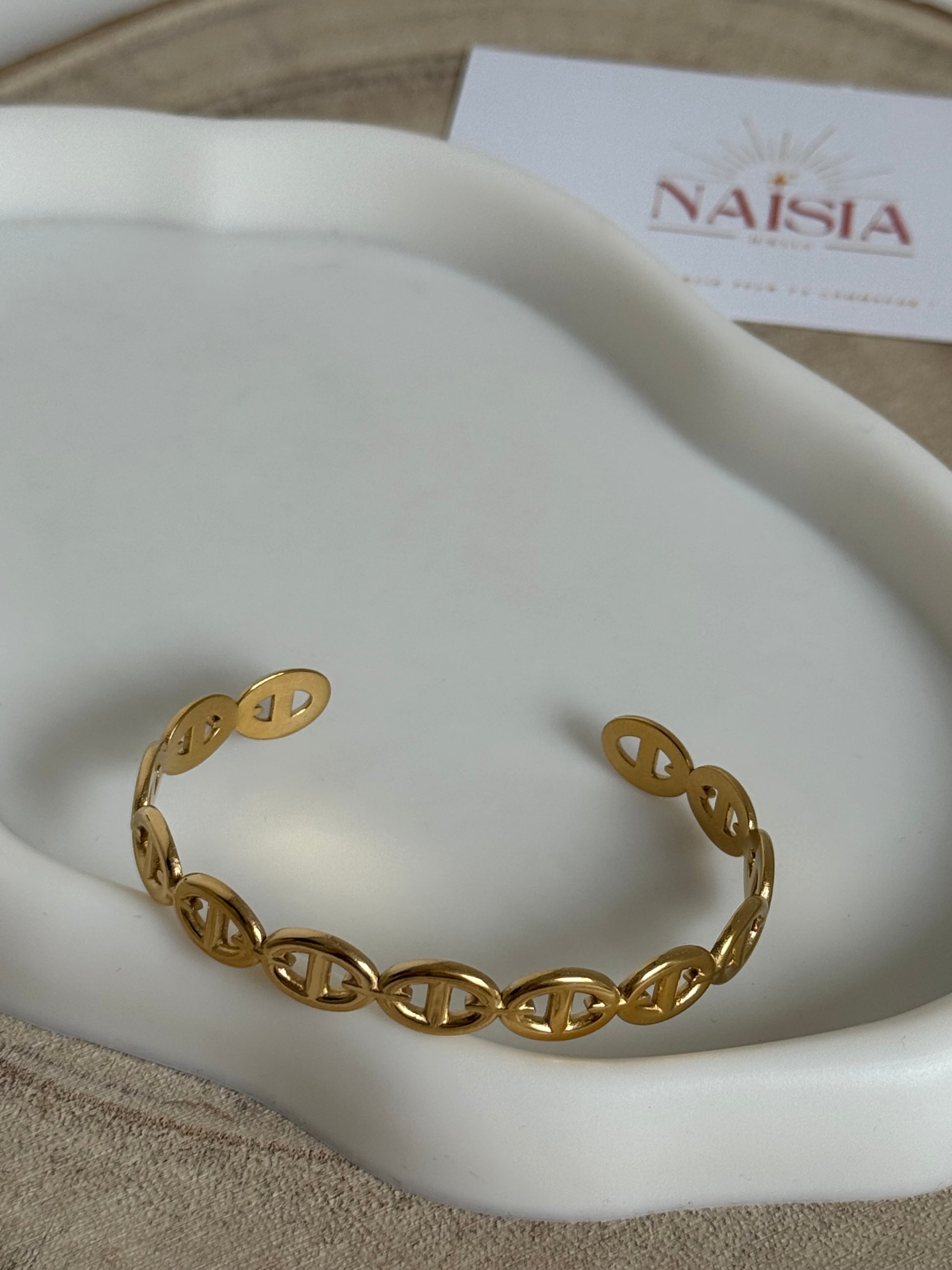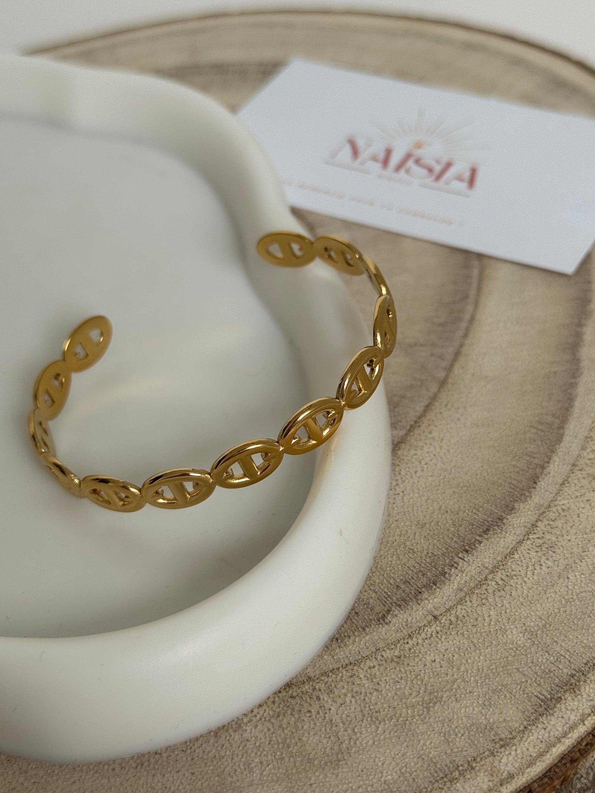 Sublimez votre poignet avec le jonc Doré. Ce bijou en acier inoxydable au design épuré et moderne, apportera une touche de sophistication à votre look. Un accessoire incontournable pour un style chic et intemporel.