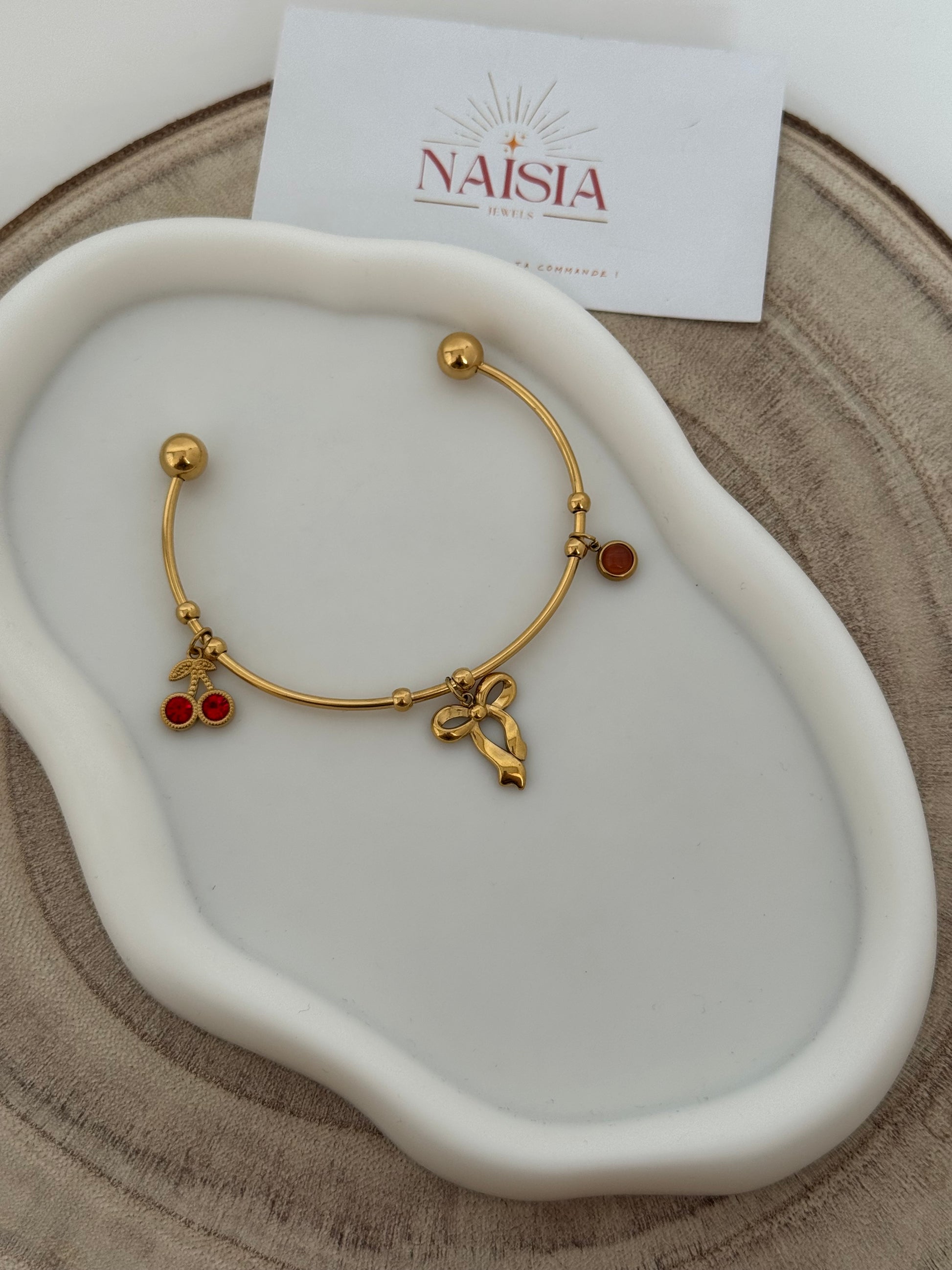 Sublimez votre poignet avec notre jonc en acier inoxydable orné de charmantes breloques. Chaque breloque ajoute une touche unique et personnelle à ce bijou élégant et résistant. Facile à enfiler et conçu pour durer, il est parfait pour exprimer votre style au quotidien.